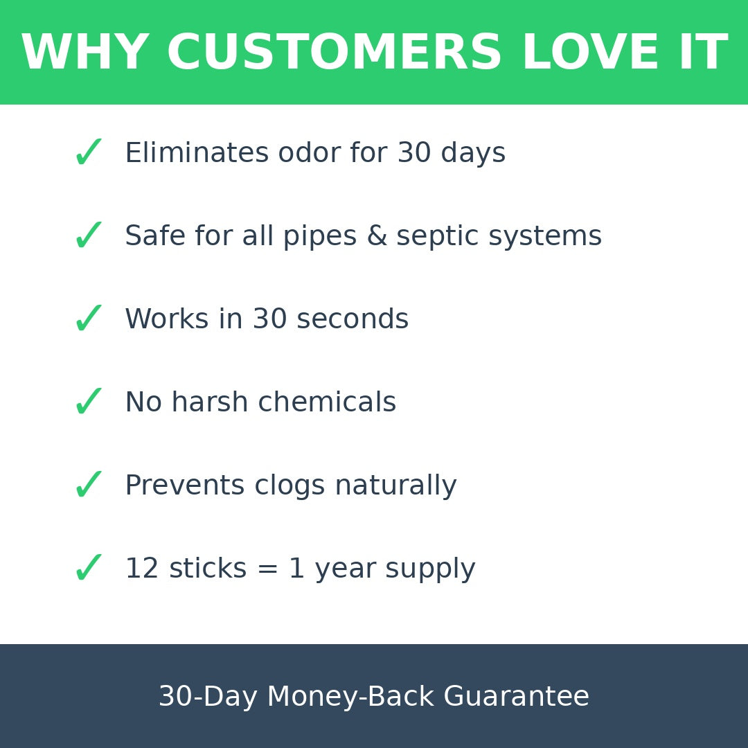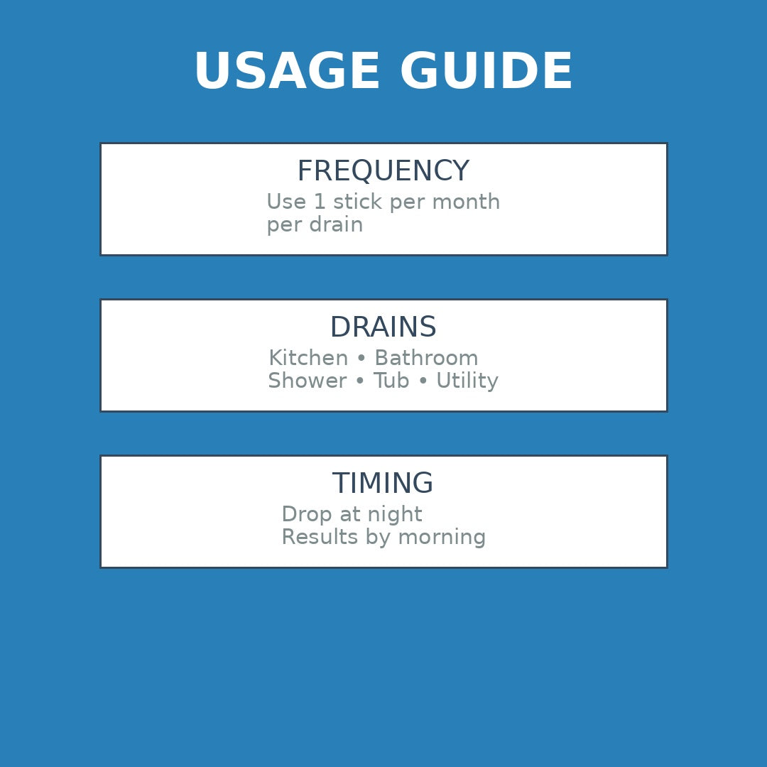 Drain Cleaning Sticks contain natural enzymes that digest biofilm on contact. Think of them as tiny Pac-Man eating the gunk in your pipes...